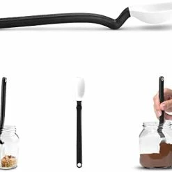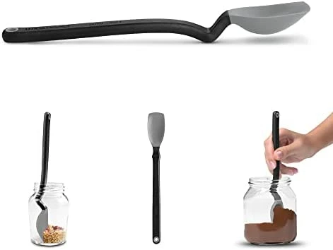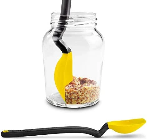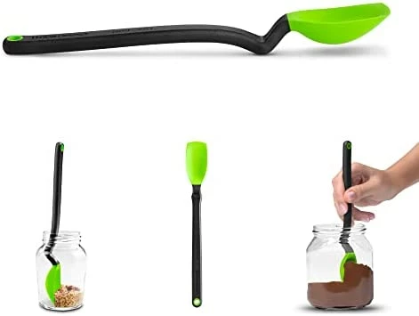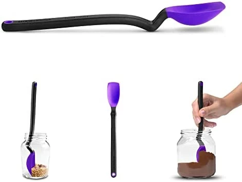 Fun little spoon to get into small spaces and sits up on the counter as to not be messy!!