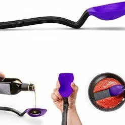 DreamFarm has a video for this product and it works as they indicated. I use it to get the final bits of sauce, jelly, or peanut butter from a jar. It cleans easily in the dishwasher (all utensils are top rack only) and by hand washing. It use it for scraping all the melted chocolate into cake batter. Great size.