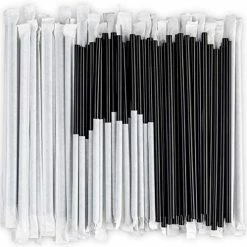 - 1000 (2 boxes of 500) clear disposable plastic straws – individually wrapped in paper sleeves for maximum sanitation. Paper sleeves are easy to remove