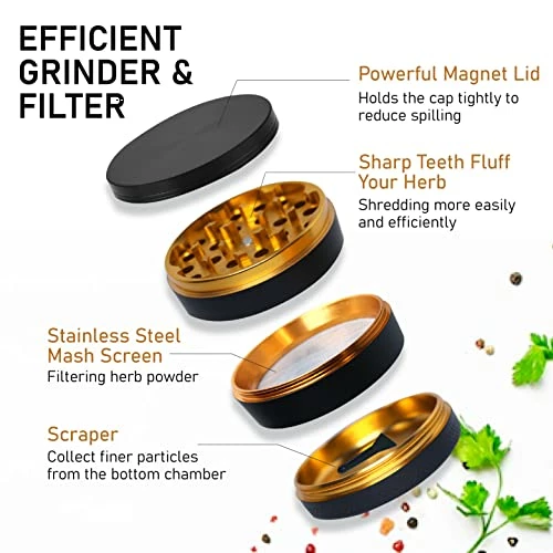 - Top quality gold aluminum alloy interior- aluminum alloy interior gives it the easy to use smooth top quality grinding.