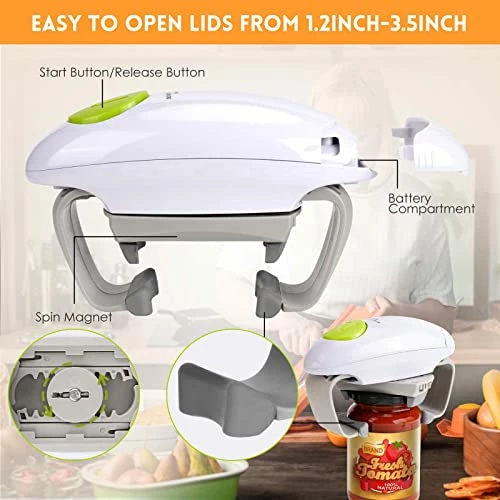 - γIt works on all size of lidsγEasy to open lids from 1.2inch-3.5inch,The electric jar opener is made of sturdy Internal stainless steel material to ensure it is durable