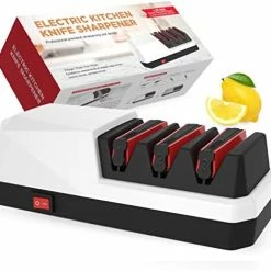 - β Reasonable Design: There are three slots in this electric knife sharpener. 100% diamond grinding wheel in slot 1 and slot 2, restores the sharpness of the blade, ceramic grinding wheel in slot 3 for polishing. With low noise, the operation of electric knife sharpener is easier and labor-saving, making it safer for women and elderly people. It is suitable for both right-handed and left-handed users. With beautiful and exquisite shape, it is very suitable for personal use or as a gift.