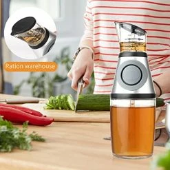 - Kitchen oil bottle It’s easy to fill and use, just press the button to measure out how much liquid you want and then pour.