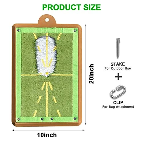 - β³γPortable Golf Impact MatγUse it anywhere, no velcro needed and a stake for outdoor usage is provided. It also comes with a clip for your golf bag.
