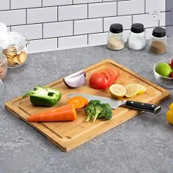 - γBUILT-IN JUICE GROOVEγEquipped with a juice groove around the edge to catch any excess juices or liquids during food prep. No need to worry about juices running off the board and onto your countertop when cutting up.
