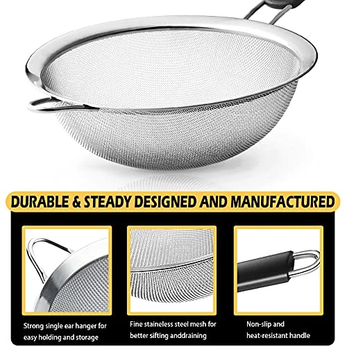 - β QUALITY AFTER-SALES SERVICE: We have absolute faith in our kitchen strainer. After all, we use them ourselves! In case, if you have any kind of issue with them, don’t hesitate to contact us, our friendly customer service will do our best to solve your problem within 24 hours. Your satisfaction is paramount!