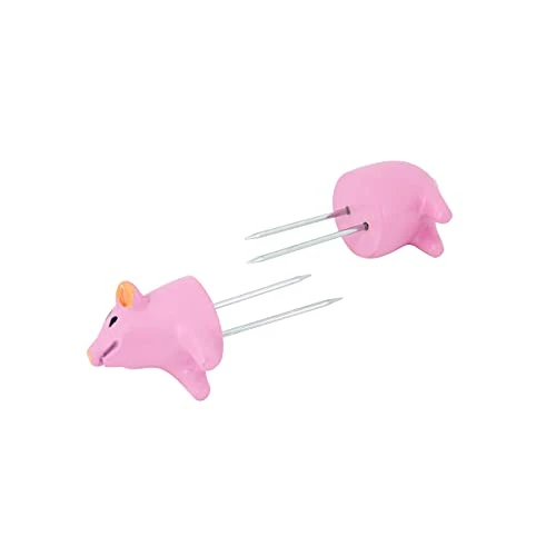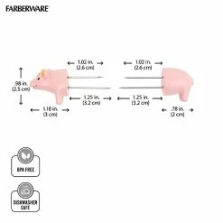Keep your hands clean while eating corn-on-the-cob with this Set of 8 BBQ Pig Corn Holders by Farberware. Simply push the stainless steel prongs into each end of an ear of corn and use the handles to securely grip the cob. These fun and functional tools prevent your fingers from touching hot kernels and melted butter. Each holder features a pig design that adds a charming look to your dinner table. Includes 4 pairs of holders. Dishwasher safe.