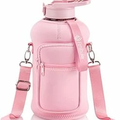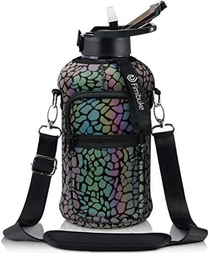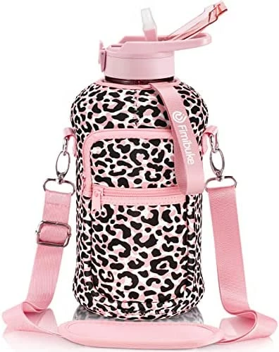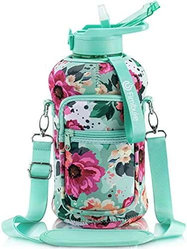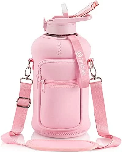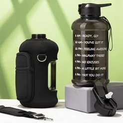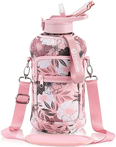 - STAY HYDRATED: Designed with time marker and inspirational quotes, Fimibuke half gallon water bottle is perfect for helping you stay motivated to drink enough water throughout the day. Featured with clear appearance and capacity scale helps you measure your daily intake of water easily and clearly. Featured with Wristband & hand held & shoulder strap that offering you with three way to carry, perfect for workout, traveling, running, hiking, cycling, camping, Yoga, or any other sports.