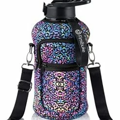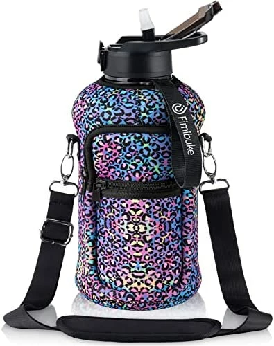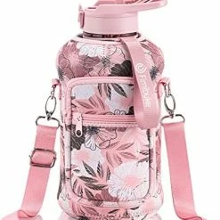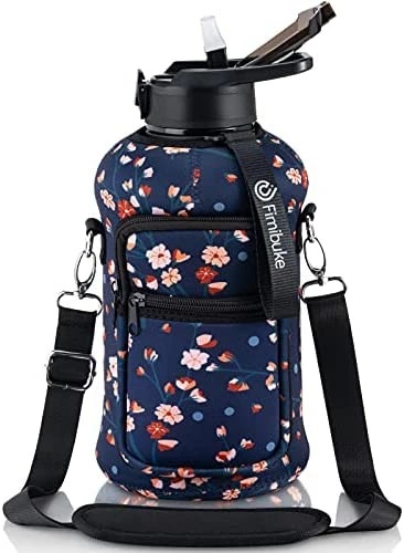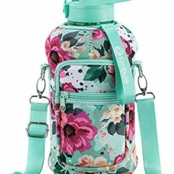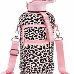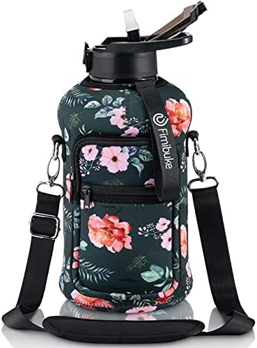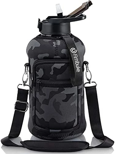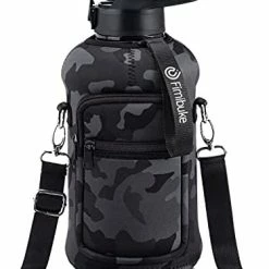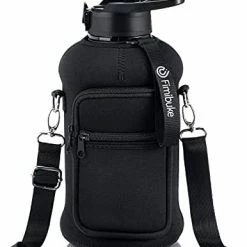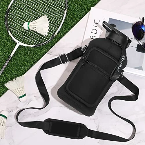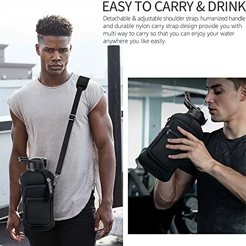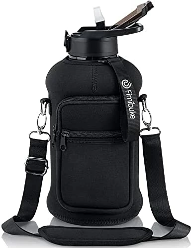 - INSULATED STORAGE SLEEVE: Our water bottle is designed with a high quality 5mm Neoprene sleeve, which not only can protect the water jug from slight bumps, but also keep water cold longer(water bottle is not insulated) and absorb messy sweat to avoid dripping on the table or seat. 2 zipper pocket is designed for storing your phone, card, airpods, etc. Comes with a adjustable & removable padded shoulder strap that can be adjusted from 25″ to 50″ to offer you more carrying options and hands free.