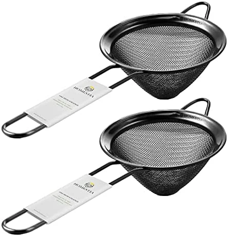 - OVERVIEW-We designed this strainer to meet your want when mixing a thick drink with pulp and lime seed. The sieve after hawthorne, aiming to sifting crushed ice and fine mesh the second straining and get your drinks softer. Just 3.3 inches in diameter, the almighty tool could be used for loose tea leave, cocktail pulp and seeds, grounds, wheat flour. Made of professional grade 18/8 stainless steel. All the plated color can elevate the look of your kitchen or home bar.