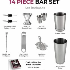 8 reviews for Buy π€© FineDine 14-Piece Cocktail Shaker Set Bartender Kit – Boston Shaker W/ Strainer, Bar Jigger, Bar Spoon & More – Full Stainless Steel Cocktail Set W/ Bar Tools – Drink Mixer Bar Set – Bar Accessories π