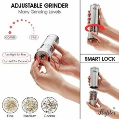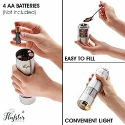 - βοΈQuality: For the Electric Salt and Pepper Grinder Set Flafster Kitchen has used the highest quality stainless steel to meet the highest quality standards and make your kitchen look sleek and stylish and ensure premium and unique experience; Its elegant design and gift box make this electric pepper grinder the perfect present for Father’s Day and any occasion