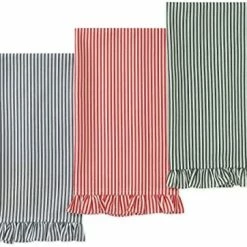 First, I didnβt expect these to soak up messes. I wouldnβt get something this decorative for that – thatβs what a bar towel is for. I expected these to be pretty and maybe help dry dishes. What I didnβt realize is that theyβd be so much better than my Homer Laughlin Fiesta towels, which are a wrinkly, hot mess. These come out of the wash looking like theyβve been ironed. Theyβre fantastic.