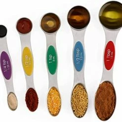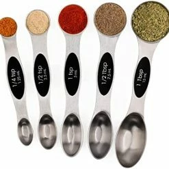 I’ve had lots of measuring spoons over the years. These are the best.They are double sided so you can use them on two different ingredients before having to wash. Also, the sharp end is helpful for those small spice bottles.They are individual so you aren’t stuck with a whole bunch on a keychain when you want to wash; or have a used one contaminate the set.They are magnetic so they stay together in storage, and you don’t lose the one you happen to need. (If you are careful about putting it back after washing)They are so worth it.