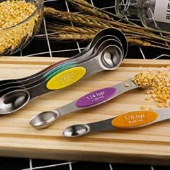 - 【ERSATILE DESIGN 】These magnetic stainless measuring spoons are great for measuring spice, sugar, salt, oil, coffee, wheat etc. Make your cooking and baking easier and more fun.