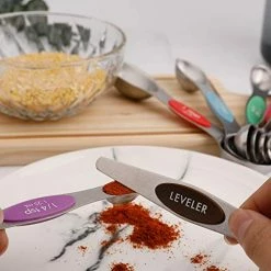 - γ Measurement Measuring Spoonsγ Set of 9 stainless steel magnetic Measuring spoons: Leveler, ( 1/16 tsp, 1/8 tsp, 1/4 tsp, 1/2 tsp, 3/4 tsp, 1 tsp, 1/2 tbsp, 1 tbsp), This measuring spoon set includes a useful leveler to help you level condiments, meet all your needs on cooking and baking.