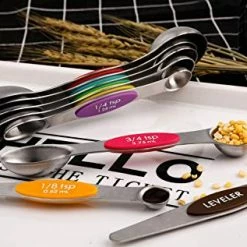 - γMagnetic Designγ-The magnets are strong enough to fasted securely to refrigerator or any other metal surface and allowing for convenient nesting, it is easy to find and ready for next time use from the drawer in kitchen, save space and store orderly. Quickly grab the spoon you need by magnetic design without having to fumble with opening and closing stainless steel ring.