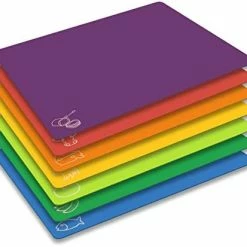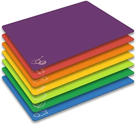 - COLOR-CODED FOR FOOD SAFETY OR FAMILY HARMONY: The set of 7 different-colored semi-transparent mats can be used to suit your household’s needs: assign a color to a particular food type or allow each member of the family to choose his or her favorite colored mat to claim as their own!