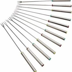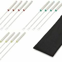 This two-piece chocolate dipping set is the perfect addition to any baker’s toolkit for handmade chocolate and candy making. Each tool is designed to hold and secure chocolates, caramels, cake balls, candies, fruits, nuts and more as you dip into chocolate or candy coating. The dipping set includes a 2-prong fork, 3-prong fork, and a spiral swirl dipper ensuring you have the right tool for the job. Each dipping tool has an 8-Inch handle making it easy to keep hands clean while dipping and decorating treats. Made of durable rust resistant stainless steel, hand washing is recommended for this set.