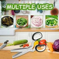 - γ5-BLADESγ Herb scissors with 5 extra-sharp 3-inch blades, it can quickly cut vegetable stems into pieces to save time and hassle. Each blade is made of high-quality stainless steel, sharp and durable, not easy to rust, can be used for a long time