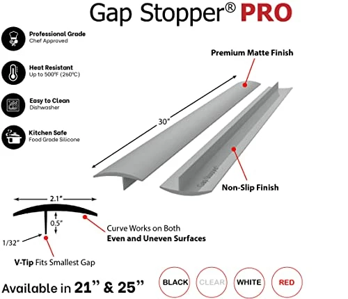 The Original Gap Stopper Pro – 30″ Red, Professional Grade, FDA Heavy 12.0 oz Silicone, Set of 2, Covers Gap between Stove & Countertops