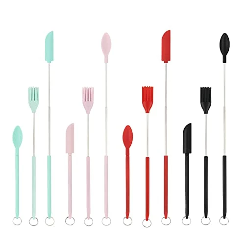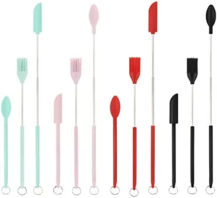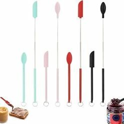 - ใVersatile UseใThe mini silicone spatula is available in 4 colors, By using the tiny spatulas, it’s convenient for spreading jams, peanut butter, ketchup, honey, salad sauce and so on evenly. Besides, it’s also ideal for scraping products, such as lip gloss, nail polish, liquid foundation, mask,s and so on.
