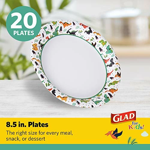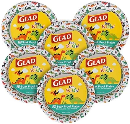 - CUT AND SOAK RESISTANT PAPER PLATES – Velociraptors, do your worst! Glad for Kids paper products can withstand the everyday slashing & cutting by little hands still mastering motor skills. Sturdy paper plates make mealtime fun & clean-up convenient