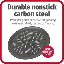 - MADE OF DURABLE CARBON STEEL: Our pizza pan is made of nonstick carbon steel for a premium grade construction that resists warping to provide a high quality baking experience for years to come