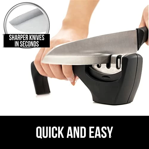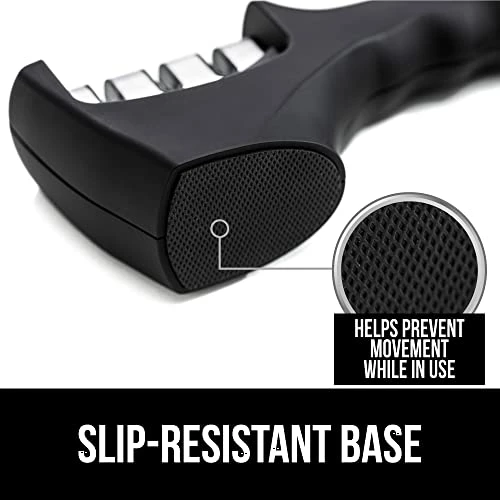 - Extremely Quick and Easy to Use: donβt let sharpening your knives be an intimidating process; designed with your comfort in mind, the ergonomic handle allows for an easy, soft grip while you sharpen; easy enough for even first timers to use, but effective enough for professional chefs