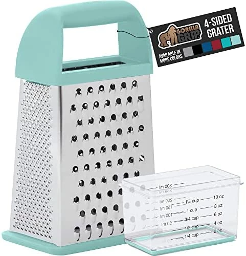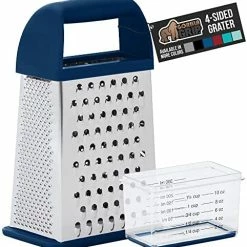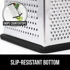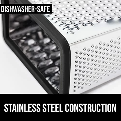 - Stainless Steel Construction: the sharp, high quality stainless steel blades on all 4 sides of the grater help grate, shred, zest and slice your foods quicker than ever; rust resistant and dishwasher safe for long lasting use
