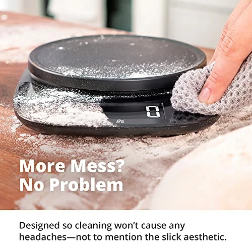 - The Freshest Features: The qualities you need and expect in a precision baking scale: readings down to the gram, an eleven pound capacity, extra-large LCD display, easy-to-clean surface, four different units of measure, and super accurate single sensor.