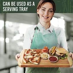 - KNIFE FRIENDLY bamboo chopping board wood – made of 100% Moso. No dull knives. Use its other side to create a large bamboo cutting board platter for serving bread, cheese plus more