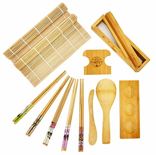 The media could not be loaded. Β Making Sushi is fun! I gave my husband sushi lessons for Fatherβs Day a few yearβs back. We like to make it together for date night or invite couples over to join us. We saw this cute kit that comes with everything in it. The instructions were simple and easy to understand especially if youβve never made sushi at home. It comes with a cute bag and 5 sets of chopsticks as well as everything else you need. We typically just roll it in the mat, but with this kit and the wood piece you form the roll in-you can add much more ingredients inside the roll itself. Itβs a fun family night as well as date night with friends! The natural wood design looks nice instead of plastic spatulas and utensils. Enjoy your sushi night with family or friends! It would be a great housewarming gift!