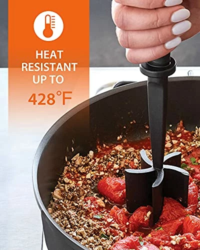 - High Quality & Safe Material: Our meat chopper is made of food-grade nylon material, BPA free, non-stick, odorless, and with a heat resistant up to 440β. It is safe to use on all types of cookware including nonstick and coated.