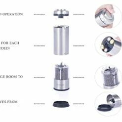 - FULLY EQUIPPED – High-quality ceramic grinding head, There is a knob at the bottom of the grinder that adjusts the roughness according to your personal preference. The LED light guides you with precision exactly where and how much seasoning is being used, to prevent over flavoring. The rubber caps of bottom to prevent dust from entering and keep your table clean.