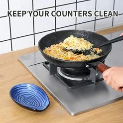 - ? EASY CLEANING AND SPACE SAVING: The surface of the spoon holder is glossy and smooth, so you can clean it with water or hand wash or place it into the dishwasher. Stove spoon rest will not take up too much space on your kitchen counter.