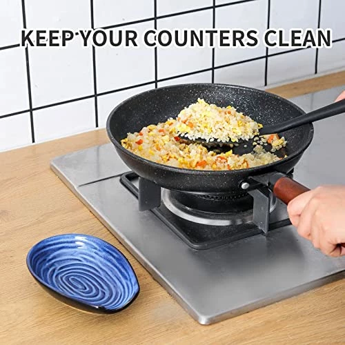 - ? NOT ONLY A SPOON REST: The blue coffee spoon rest is 5.7″ L and 3.9″ W, which is suitable for coffee spoon, teaspoon, knives, forks and chopsticks. It can also widely used as dessert, snack, appetizer and saucer dish. The cooking spoon rest can prevent the stain drip and keep your kitchen stovetop clean.