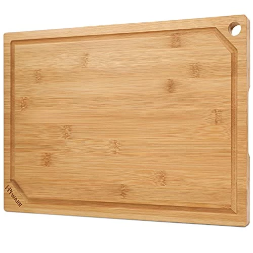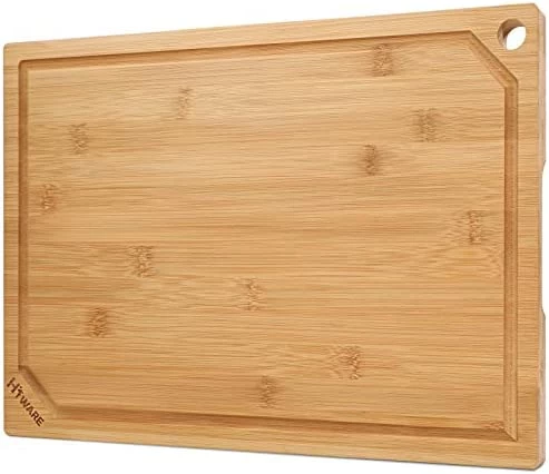- JUICE GROOVE & INNER HANDLE DESIGN: Surrounded built-in juice groove is close to the edge to maximize the cutting area while perfectly catch excess liquids without overflow to the countertop, meanwhile the grooves are not too narrow to clean. The inner handles are on the back taking no cutting areas and branding space doesn’t take up much space, as well as the hanging hole.