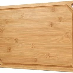 - NATURAL ORGANIC BAMBOO: Made from natural organic bamboo which is environmentally friendly and food safe, strong and resilient, ideal for slicing bread, fruits, vegetables, meats, steaks, cheeses, or as a serving tray. Compared to plasticsβ, which are brittle and unhealthy, bamboo contains no BPA, no formaldehyde and is friendly to forests and oceans.
