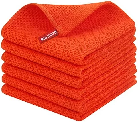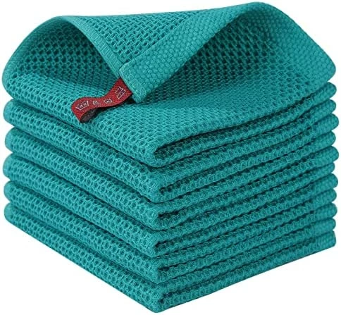 - COTTON DISH CLOTHS: 100% cotton waffle weave dishcloths that feels soft and comfortable. Unique honeycombs design makes it more durable, and soften with every washing, so these dish towels won’t scratch your delicate cookware, plates and pans.