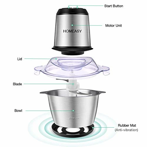 - βMULTI-FUNCTIONAL FOOD CHOPPER – This food grinder is equipped with 4 stainless steel blades and 2 modes to choose from. You can chop, grind various ingredients, such as onions, meat, ham, garlic, onion, small herbs. HOMEASY electric chopper is an ideal gift for your wife, mother.
