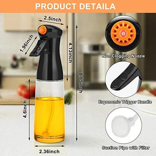- γMulti-purpose Oil Sprayerγ-This olive oil sprayer mister is the perfect tool for the home & kitchen. Fill in the sprayer with your favorite oil, sunflower oil, vinegar, soy sauce, lemon, and lime juice. And widely used for frying steakοΌsalad making, Cooking, Baking, Roasting, Frying.