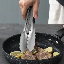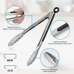 - ERGONOMIC HANDLE DESIGN AND HEAT RESISTANT: The handle is cushioned with silicon, good for thumb rest and ensures good grip and control. The metal tong head is super heat resistant. Easy to rinse, dishwasher safe.
