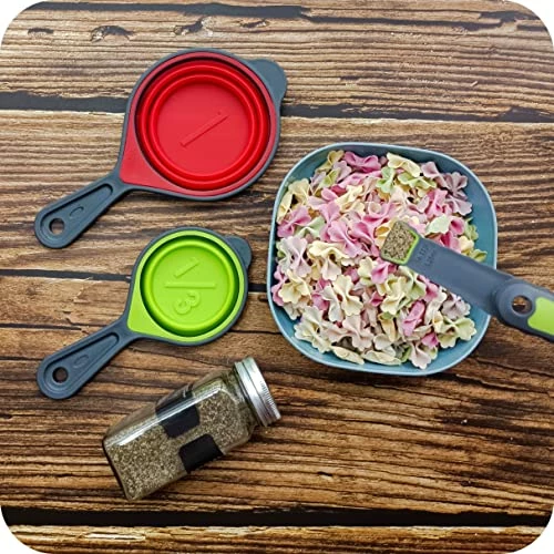 - β±β±Multifunction silicone measuring Cups and Measuring Spoons for scooping flour, sugar, rice, & more. Take this great portable traveling measuring cups and spoon set for picnics, camping, hiking, or just for cooking outside