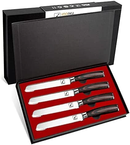 This 5″ knife is just the right size. It chops and slices perfectly, without being too large and unwieldly. The blade is sturdy and sharp, the wooden handle is comfortable and beautiful, and it seems very well made. Imarku seems to know what they’re doing; I will not hesitate to purchase another Imarku knife.