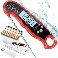 I bought this to replace another thermometer I had for years. I couldn’t believe how fast the readings were. Its a great size and I love that it has a magnet so I can attach it to the refrigerator so its always there when I need it. The display is nice and large. I really appreciate that!!! The design is great in that the probe folds right into itself. There are no caps or covers for me to lose. It has a hold feature so the next reading will start from the last temp. Honestly, I don’t use that feature because it already gives you such a quick reading. It also has the Max and Min settings along with the button to light up the display. I love the temperature chart for the different meats. It saves me from having to look it up and again it is a great size so it is easy to read. I am really impressed with this thermometer and the price is great too. You won’t regret this purchase!