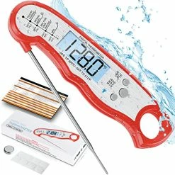 - 【A Large Screen at Your Reach】 This food thermometer comes with a large backlight screen, enabling you to see the temp clearly whether in a poorly lighted kitchen or outdoors of too much light. The built-in magnet and large hanging hole make storing it a snap. What’s more, the ergonomic handle offers a comfortable grip, letting you enjoy every step of cooking!