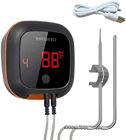 First things first, I’m coming from a Weber iGrill2, which I found out was reading temps ALL wrong and resulting in overcooked everything in my smoker, not ok, also that ran on 4x AA batteries, not fun when you’re smoking for 8-14 hrs at a time. That said, the USB rechargeable aspect of this was a very welcomed upgrade, kudos to inkbird for that. The temps I found to be spot on, again, kudos, just produced an amazing pork shoulder on its inaugural run. HOWEVER – bluetooth range on this is truly awful, from my smoker to my house is maybe 15 ft, maybe, stepped inside – disconnect, pleasant alarm to let me know. Reconnect, find spot in window where connection seems stable, leave phone there – sort of defeats the purpose, I can read the temp on the unit on the smoker from the window, ugh. Then, apparently as the pork was nearing completion, it disconnected again, with no alarm, my kid came in and told me the thing was beeping- went out, yep, temp reached, no alert on phone b/c the flimsy bluetooth connection. I’ll keep it, because I used it, and it is accurate, but I’m shopping for a longer range alternative.