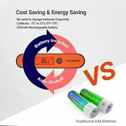 - ?βγRecharged & Backlightγ250mAH rechargeable lithium battery of this digital pen thermometer could last 11 hours with backlight once fully charged, convenient and eco-friendly, save your time and money on replacing batteries. Another amazing magnet design makes the kitchen cooking instant read food thermometer easy to be stuck to the oven or refrigerator securely when not working.
