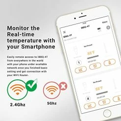 - β γWi-Fi ConnectionγDownload Inkbird Pro app, this smoker grill thermometer is connected over 2.4GHZ Wi-Fi with your phone.One phone can pair with more than one IBBQ-4T and more than one people can control same IBBQ-4T Wifi meat thermometer at same time. Please do not put the unit in high temperature places. The temperature of the plastic unit can bear should not over 176Β°F/80β.